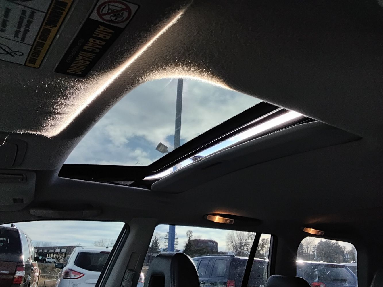 Third-row seatback upholstery: Carpet third-row seatback upholstery